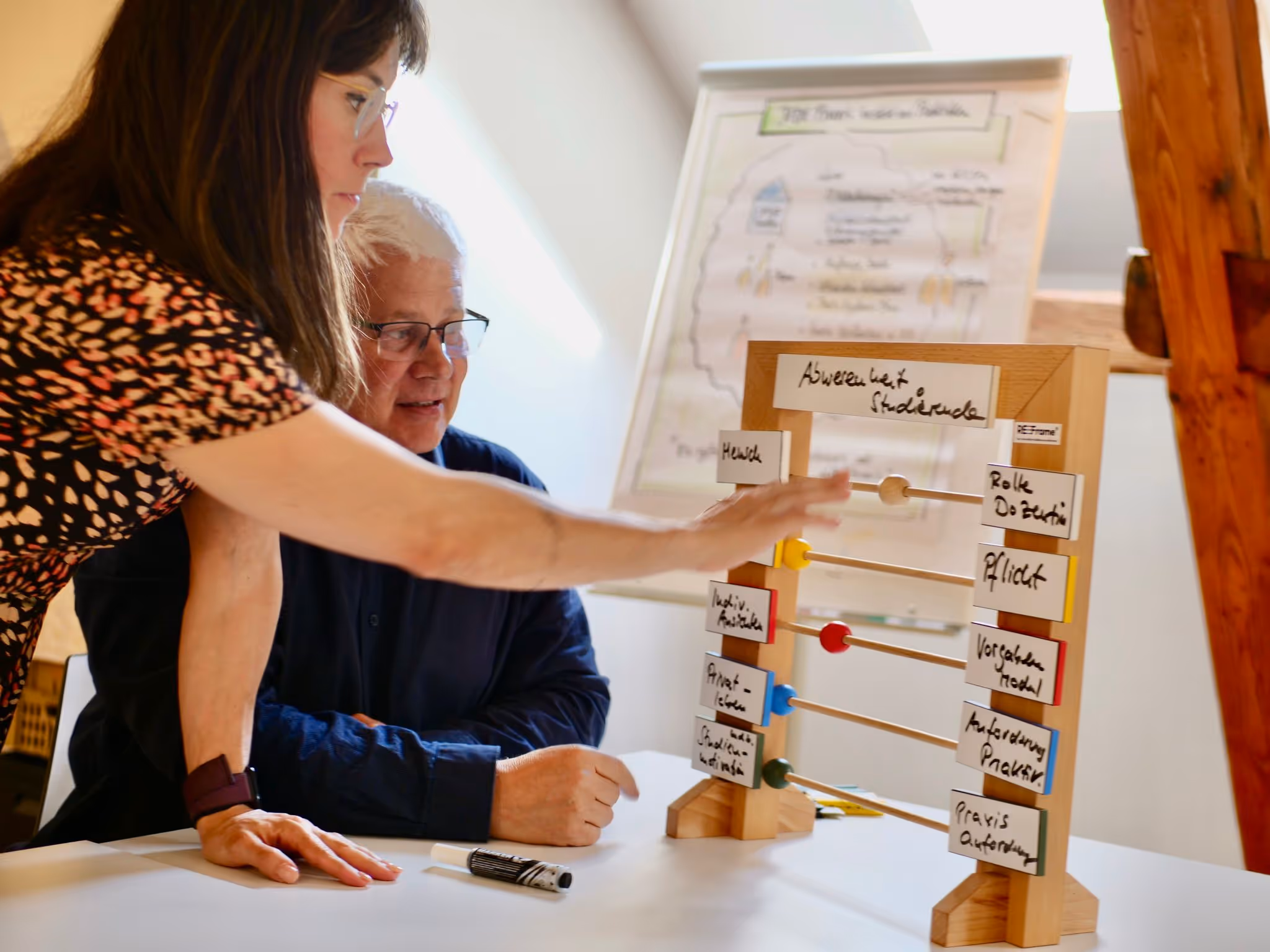 Wir zerlegen gemeinsam Herausforderungen in prägnante Spannungsfelder und visualisieren diese.