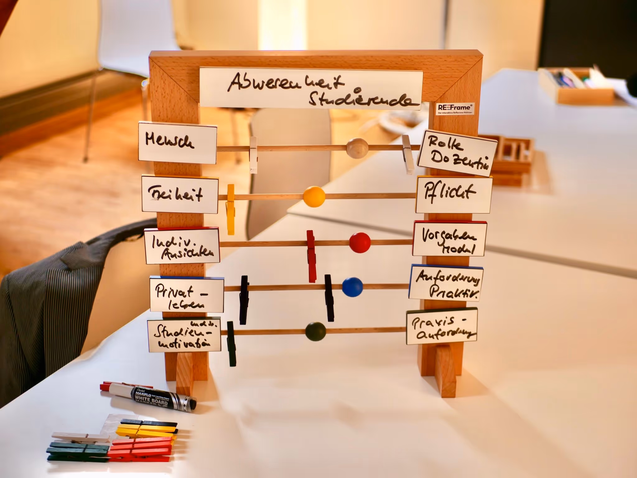"Mit dem Re-Frame haben wir in Schulungen mit 20 Leuten erfolgreich und spassvoll gearbeitet. Jede Trainerin konnte so ihre blinden didaktischen Flecken -gerade bei schwierigen Themen-anschaulich erkennen."